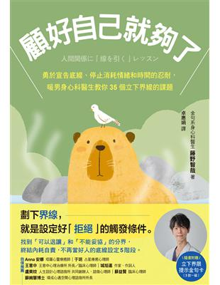 ‧本書以心理專業為底,細緻呈現人際界線與消耗,釐清顧好自己並非自私,讓人在尊重他人的同時,也能為自己的生活劃下第一道線。──城旭遠|作家、作詞人